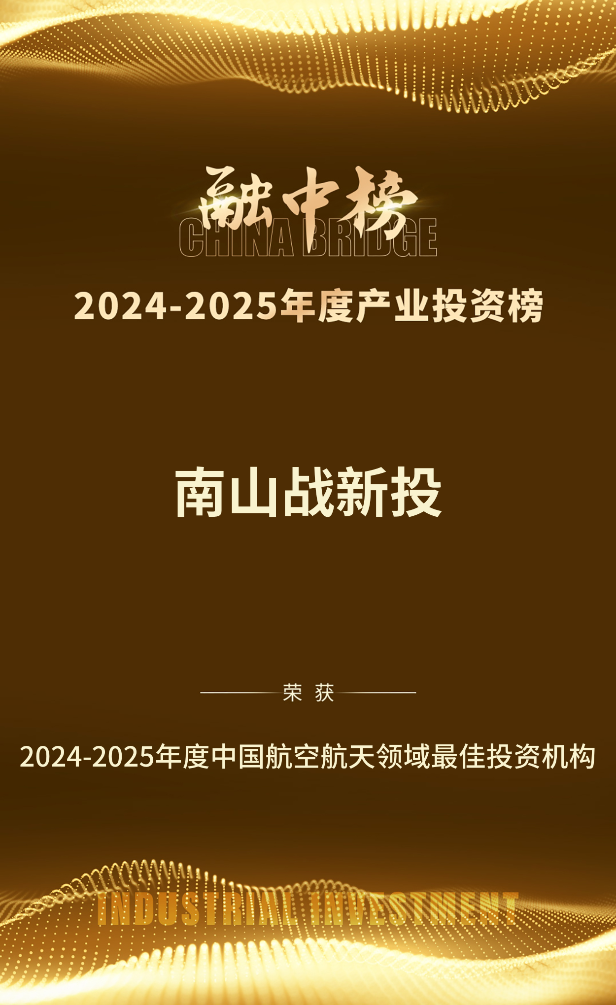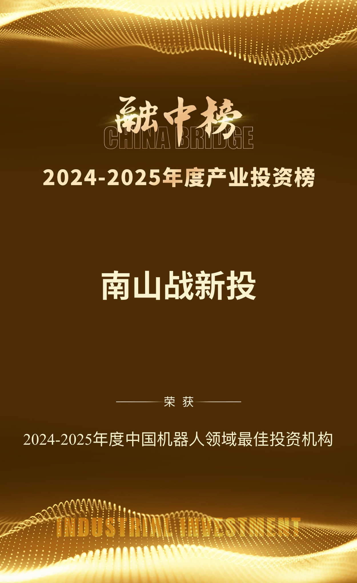 南山战新投入选“2024-2025年度中国机器人领域最佳投资机构”,“2024-2025年度中国航空航天领域最佳投资机构”。