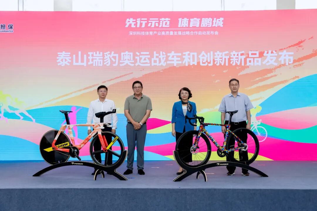 在发布会上,泰山体育产业集团有限公司(以下简称泰山体育)带来了新一代“泰山瑞豹奥运战车”和瑞豹碳纤维马赛克自行车。其中,奥运战车将用于2028年洛杉矶奥运会。截至目前,泰山体育已经成功服务包括8届奥运会在内的近2000次海内外大赛,目前,正全力备战十五运会,2026年名古屋亚运会以及2028年美国洛杉矶奥运会。