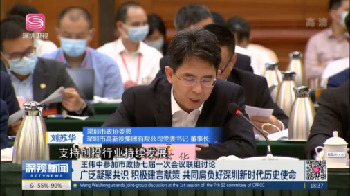 13日,深圳市政协七届一次会议隆重开幕。在联组讨论会上,市政协委员围绕“扎实推进高质量发展,努力成为构建新发展格局的先行示范者”主题建言献策。市政协委员、深圳高新投集团董事长、深圳市融资担保业协会会长刘苏华发言建议,推动科技与金融深度融合,促进科研成果产业化,实现国民经济高质量发展。以下为深圳特区报和深视新闻报道。