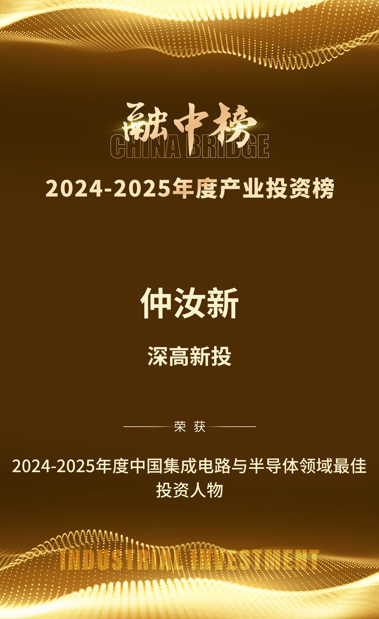 近日,“融中2024-2025年度中国产业投资榜单”正式揭晓,深高新投凭借在创投领域的卓越表现,斩获融中2024-2025年度“中国先进制造领域最佳早期投资机构”、“中国数字经济领域最佳投资机构”和“中国新材料领域最佳投资机构”三大奖项。深高新投蕾奥基金总经理仲汝新荣获融中2024-2025年度“中国集成电路与半导体领域最佳投资人物”。