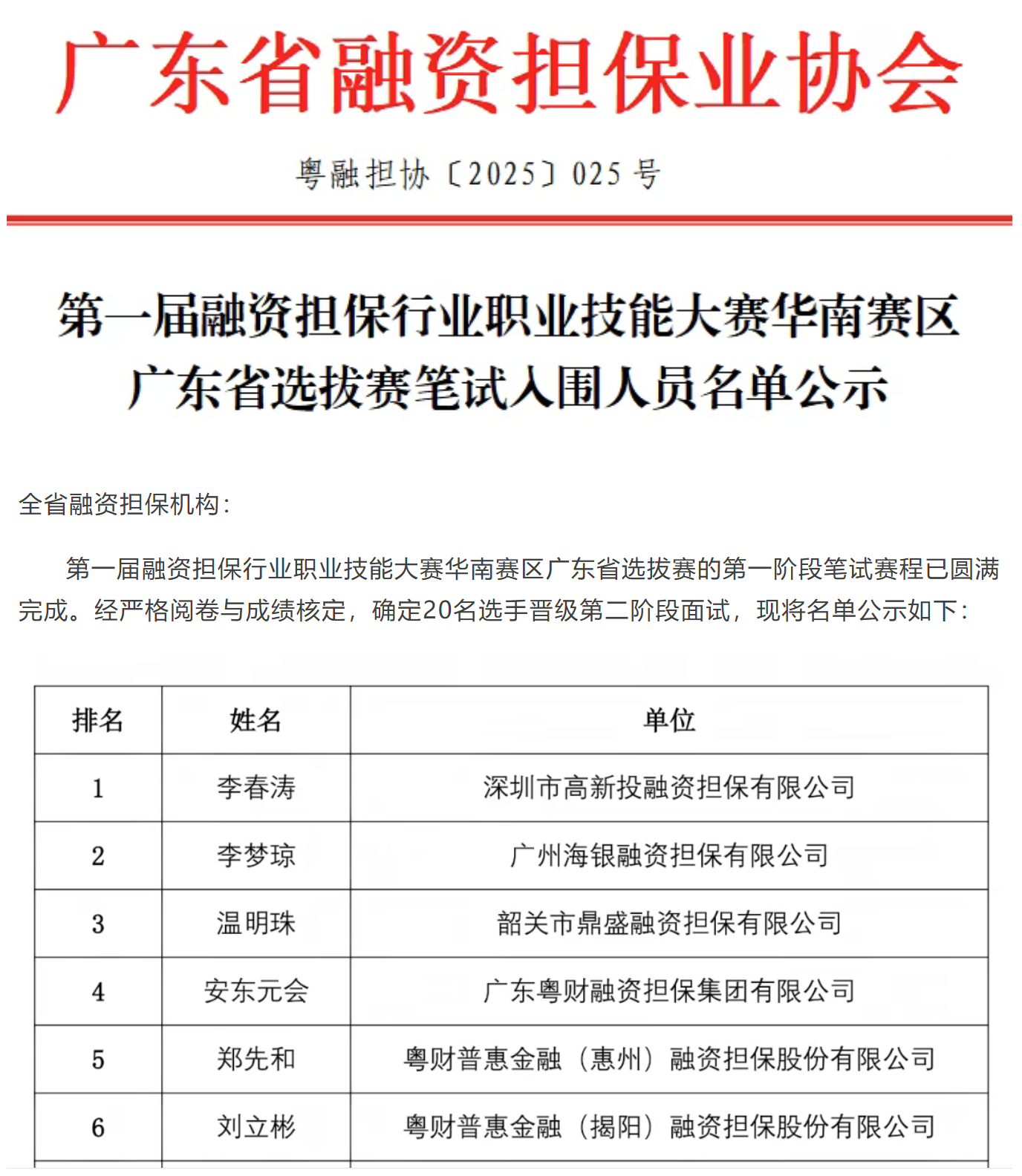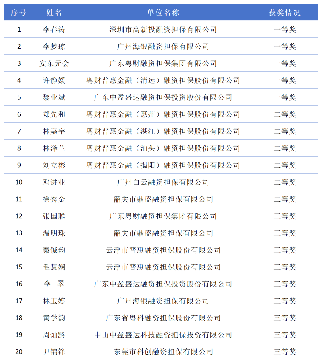 近日,由中国融资担保业协会举办的“第一届融资担保行业职业技能大赛”华南赛区广东省选拔赛圆满收官。深圳高新投融资担保公司员工李春涛在激烈角逐中脱颖而出,在比赛中荣登榜首,获得一等奖。